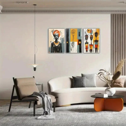 3pcs Abstract African Tribal Abstract Metal Print Ready to Hang Art