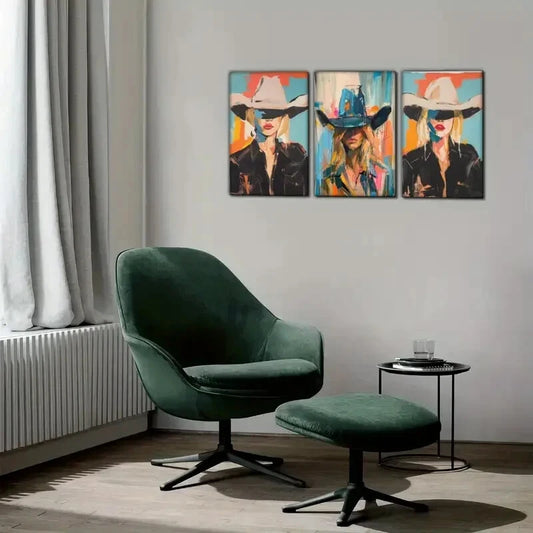 3pcs Western Cowgirl Art Posters Oil Painting Metal Print Ready to Hang Art
