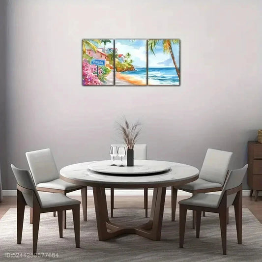 3pcs Coastal Cityscape, Watercolor style Tropical Metal Print Ready to Hang Art