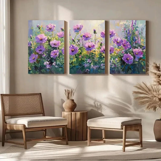 3pcs Vibrant Purple Flower Lavender Bloom Metal Print Ready to Hang Art