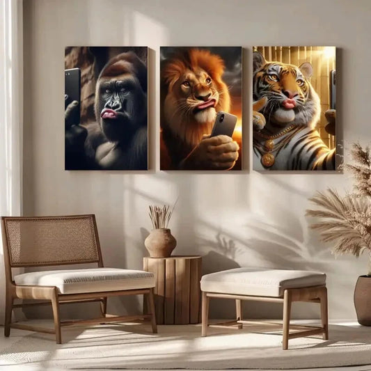 3pcs Funny Animals Dressed in Fancy Metal Print Ready to Hang Art