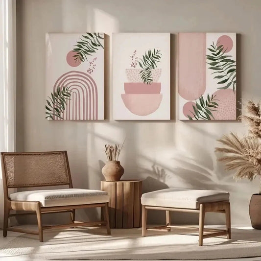 3pcs Minimalist Rose Pink and Leaves Metal Print Ready to Hang Art