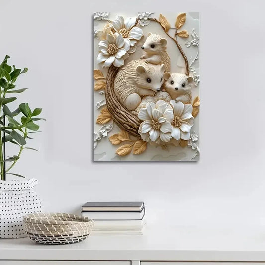 Featuring Hedgehogs Among Heart Painting 40x60cm Metal Print Ready to Hang