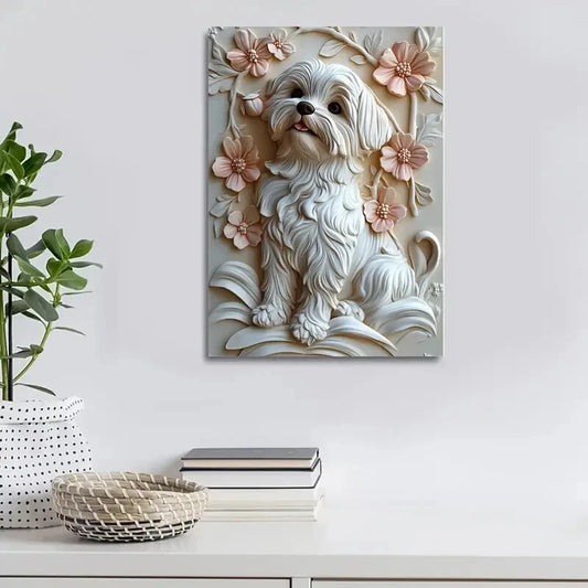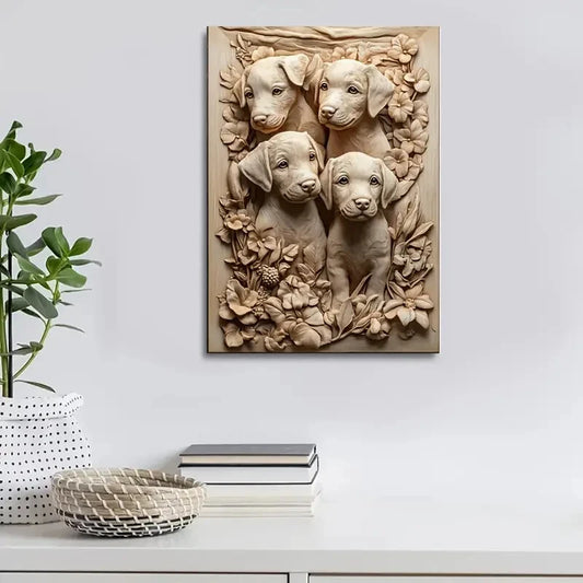 Wooden Dog Heart Blossoms Design Painting 40x60cm Metal Print Ready to Hang