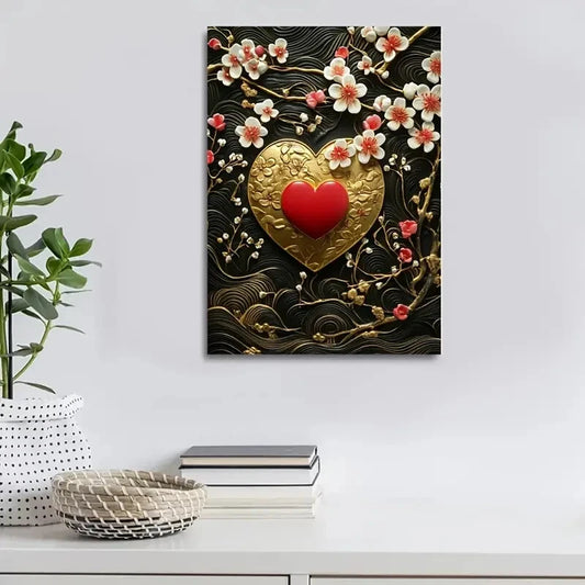 Beautiful Heart Blossoms Golden Painting 40x60cm Metal Print Ready to Hang