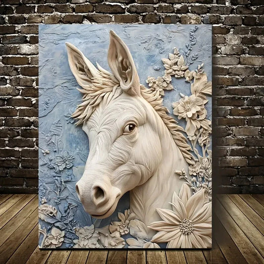 Featuring a Donkey Surrounded by Flowers Painting 40x60cm Metal Print Ready to Hang