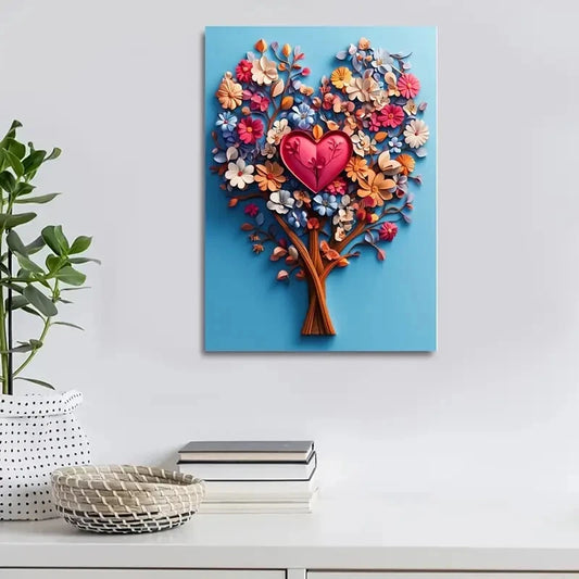 Beautiful Featuring Heart Blossoms Tree Painting 40x60cm Metal Print Ready to Hang