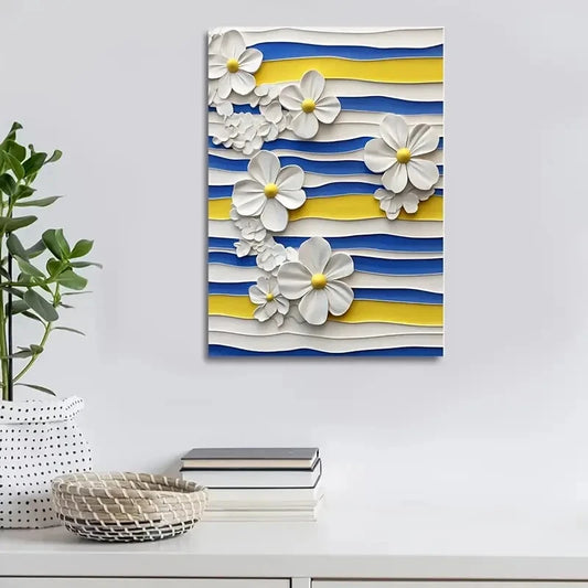 Featuring Blue And White Stripes with Yellow Painting 40x60cm Metal Print Ready to Hang
