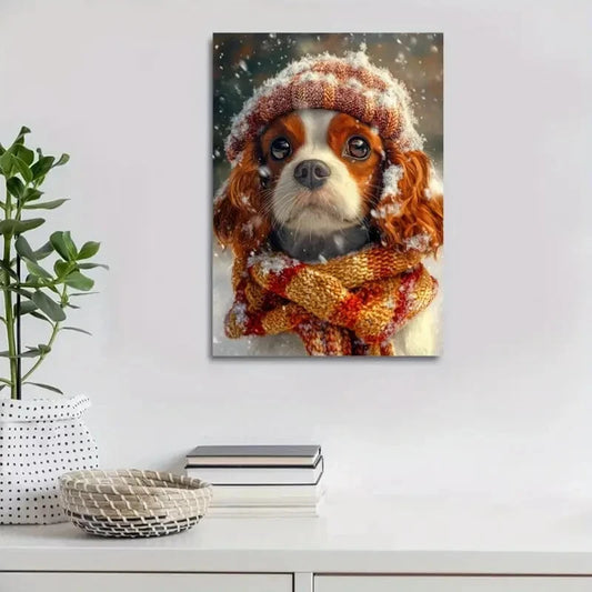 Charming Cavalier King Charles Spaniel Winter Painting 40x60cm Metal Print Ready to Hang