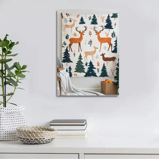 Contemporary Deer Forest Pattern Painting 40x60cm Metal Print Ready to Hang