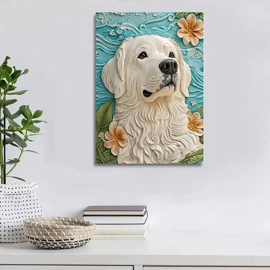 Featuring a White Labrador Theme Painting 40x60cm Metal Print Ready to Hang