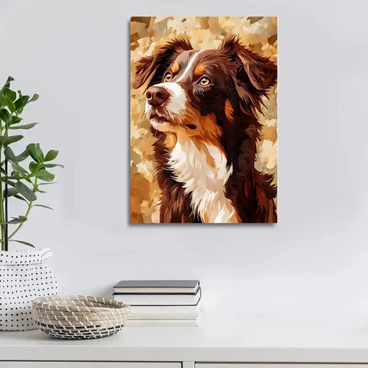 Chocolate Australian Shepherd Dog Painting 40x60cm Metal Print Ready to Han