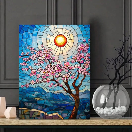 Cherry Blossom Tree Pink Flowers And Sunset Landscape 40x60cm Metal Print Ready to Hang