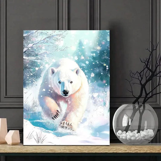 Dynamic White Polar Bear In Snowy Landscape Painting 40x60cm Metal Print Ready to Hang