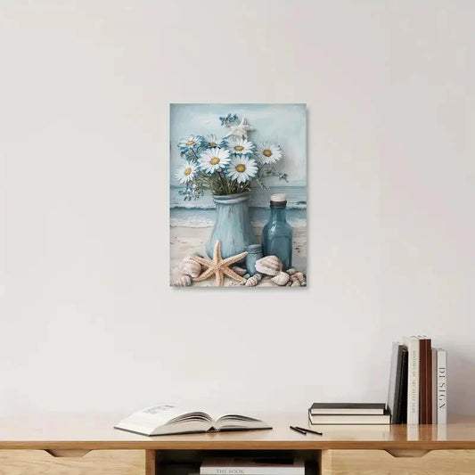 Beautiful Serene Coastal & Ocean Flower Painting 40x60cm Metal Print Ready to Hang