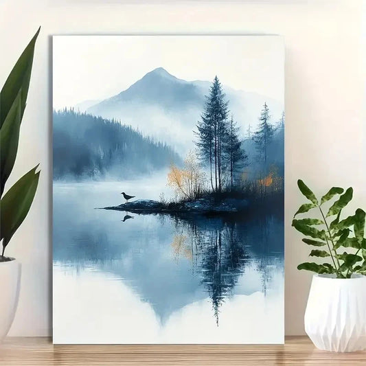 Beautiful Calm Lake Reflection Modern Painting 40x60cm Metal Print Ready to Hang