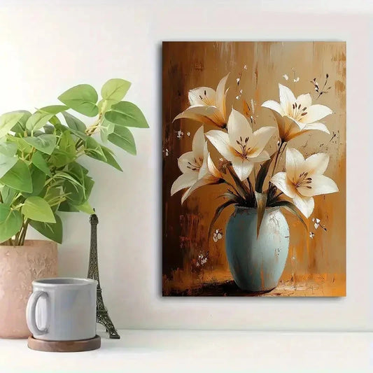 Elegant White Lilies Abstract Floral Painting 40x60cm Metal Print Ready to Hang