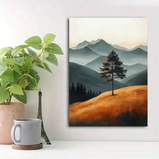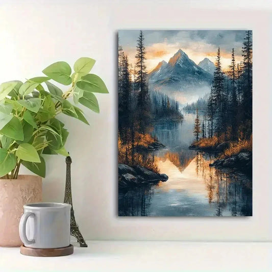 Beautiful Majestic Mountain Landscape Painting 40x60cm Metal Print Ready to Hang