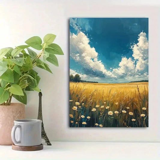 Beautiful Bright Cloudy Skies Above Painting 40x60cm Metal Print Ready to Hang