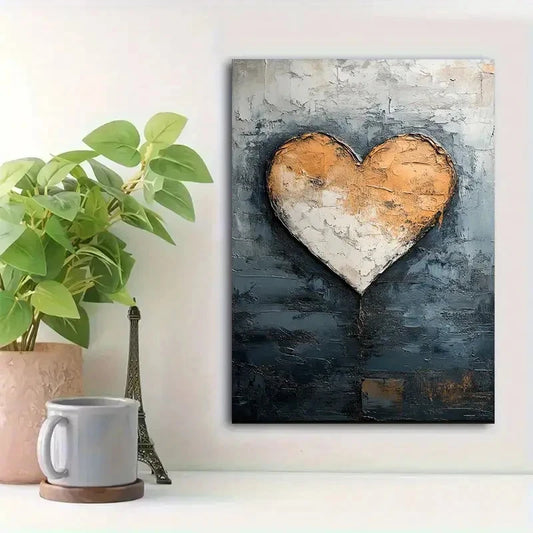 Beautiful Textured Blue & Orange Heart Painting 40x60cm Metal Print Ready to Hang