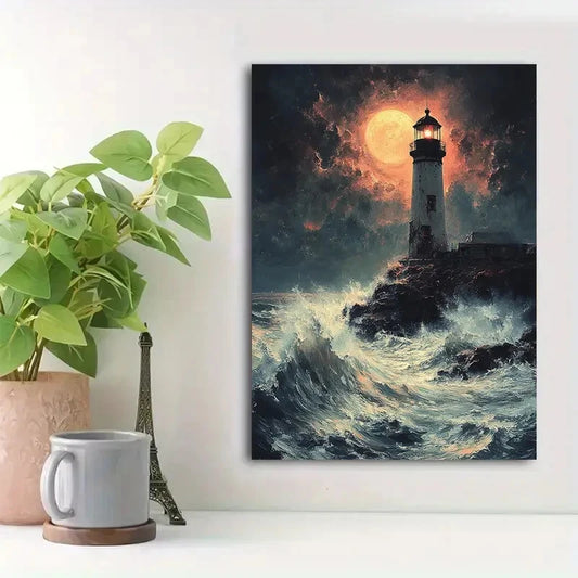 Beautiful Spooky Abandoned Lighthouse Painting 40x60cm Metal Print Ready to Hang