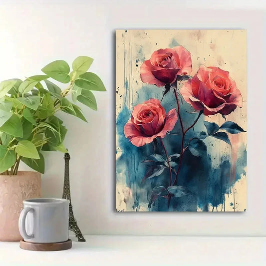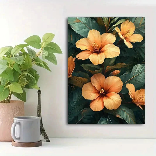Beautiful Vibrant Floral Art with Green Leaves 40x60cm Metal Print Ready to Hang