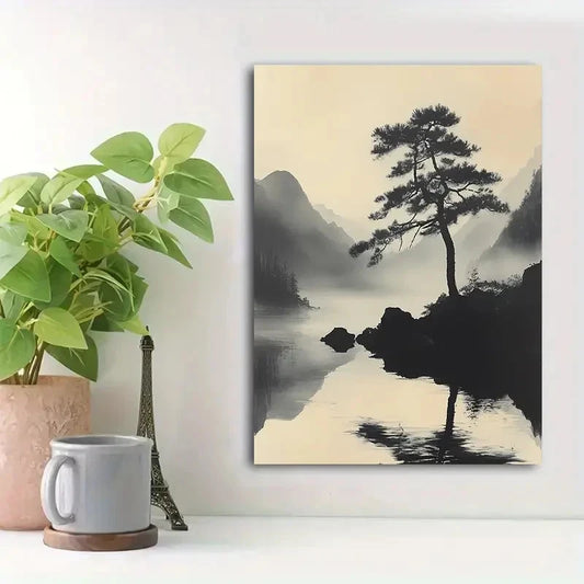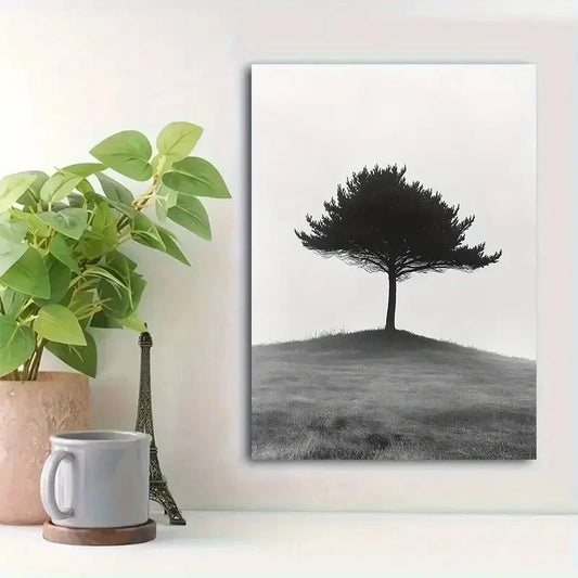 Beautiful Minimalist Black & White Lone Tree Painting 40x60cm Metal Print Ready to Hang