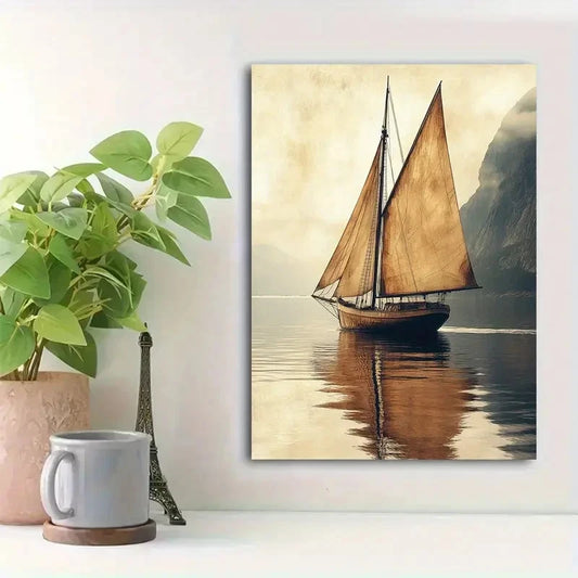 Beautiful Nautical Painting with Sepia Tones 40x60cm Metal Print Ready to Hang