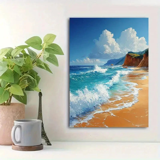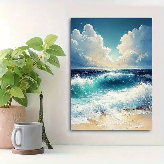 Beautiful Ocean Waves & Clouds Painting 40x60cm Metal Print Ready to Hang