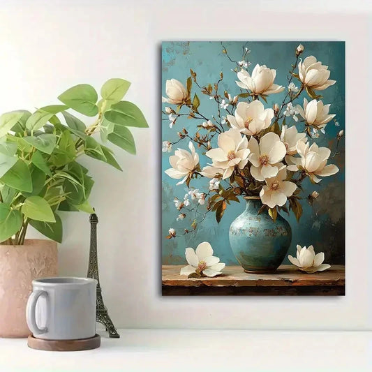 Beautiful Elegant Magnolia Bouquet Painting 40x60cm Metal Print Ready to Hang