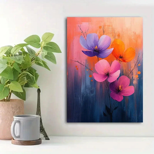 Beautiful Vibrant Pink Purple Orange Flowers 40x60cm Metal Print Ready to Hang