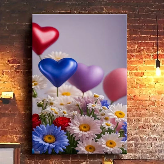 Vibrant Floral Balloons & Daisies Metal Print Ready to Hang
