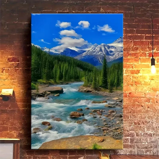 Mountain Stream Landscape & Blue Sky Metal Print Ready to Hang