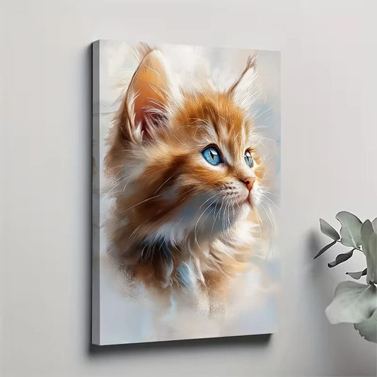 Vibrant Blue Eyes, Soft Orange & White Fur Metal Print Ready to Hang