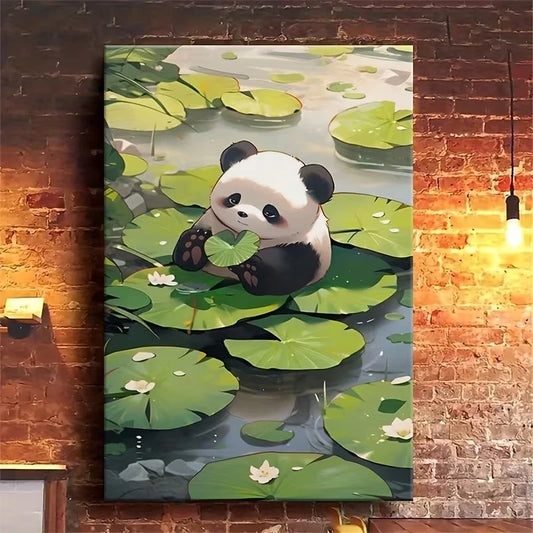 Adorable Panda on Lily Pads Metal Print Ready to Hang