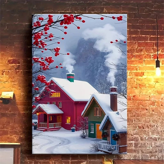 Snow-Covered House Landscape Metal Print Ready to Hang