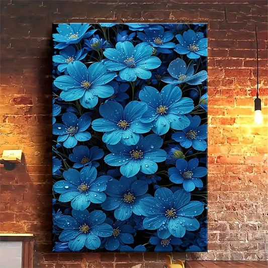 Vibrant Blue Blossom with Golden Center Metal Print Ready to Hang