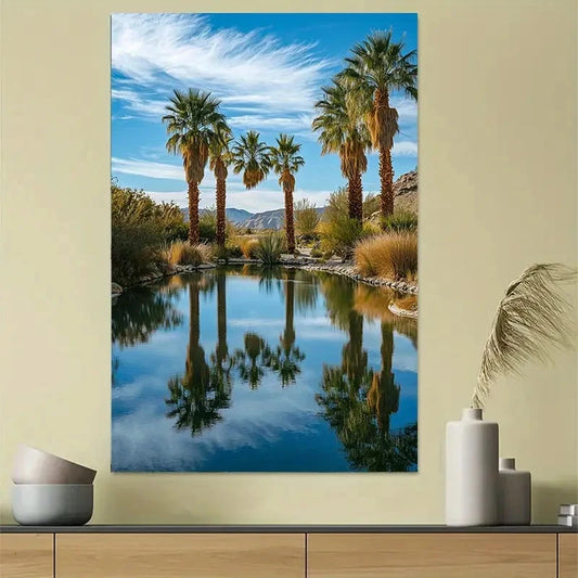 Palm Tree Reflection Pond Desert Poster 40x60cm Metal Print Ready to Hang