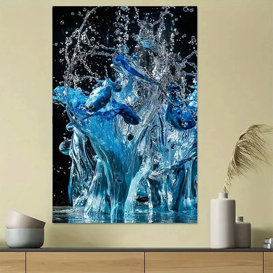 Blue Water Splash Abstract Poster 40x60cm Metal Print Ready to Hang