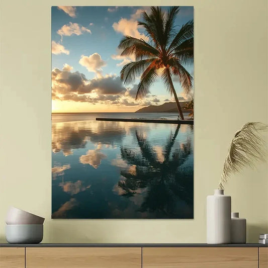 Tropical Beach Palm Tree Sunset Poster 40x60cm Metal Print Ready to Hang
