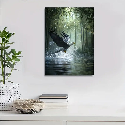Majestic Eagle Splashing in Bamboo Grove 40x60cm Metal Print Ready to Hang