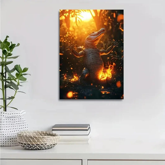 Whimsical Dancing Crocodile In Magical Painting 40x60cm Metal Print Ready to Hang