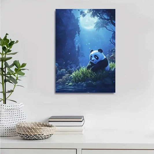 Whimsical Panda Underwater Scene With Coral Painting 40x60cm Metal Print Ready to Hang
