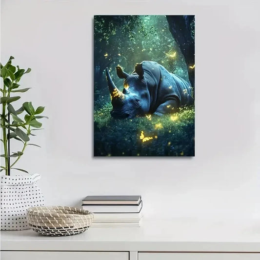 Fantasy Rhino in Magical Forest Painting 40x60cm Metal Print Ready to Hang