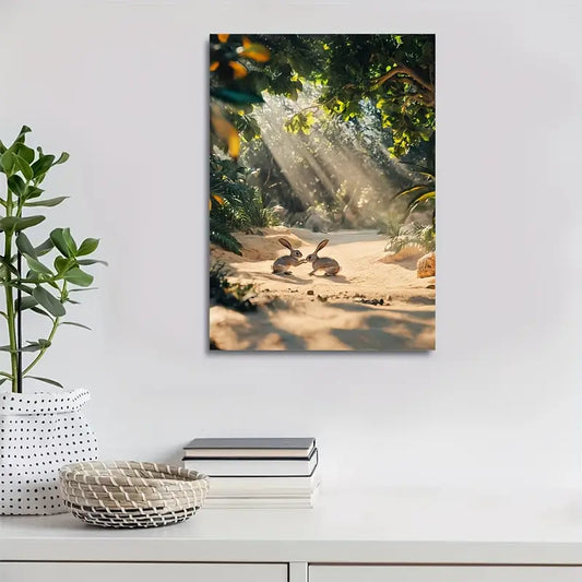 Realistic Rabbit Play Scene on Sandy Beach 40x60cm Metal Print Ready to Hang
