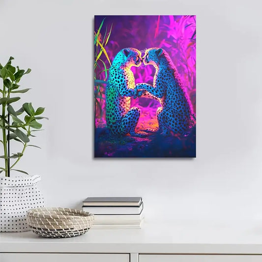 Surreal Neon Glow Cheetah Play Vibrant Modern 40x60cm Metal Print Ready to Hang