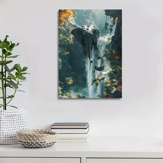 Steampunk Elephant in Snowy Mountain Stream 40x60cm Metal Print Ready to Hang