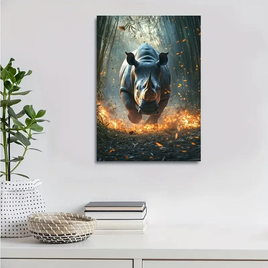 Dreamlike Rhino in Bamboo Grove with Glowing 40x60cm Metal Print Ready to Hang