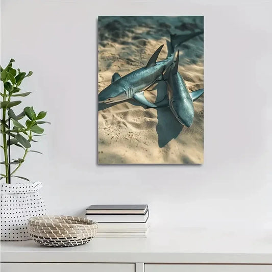 Realistic Shark Scene on Sandy Beach Painting 40x60cm Metal Print Ready to Hang
