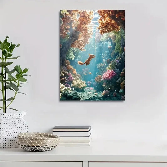 Fantasy Fox Swinging in Underwater Coral Painting 40x60cm Metal Print Ready to Hang